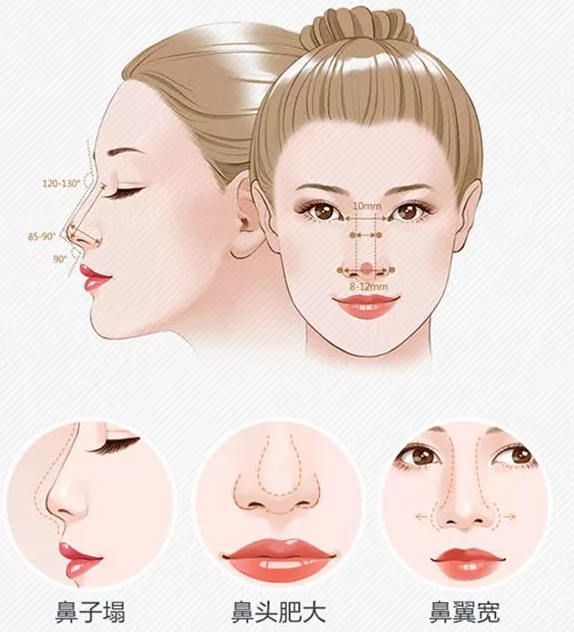 :包含鼻梁高度、鼻头,鼻尖形态、鼻翼宽度、鼻孔形态中两项甚至多项问题。