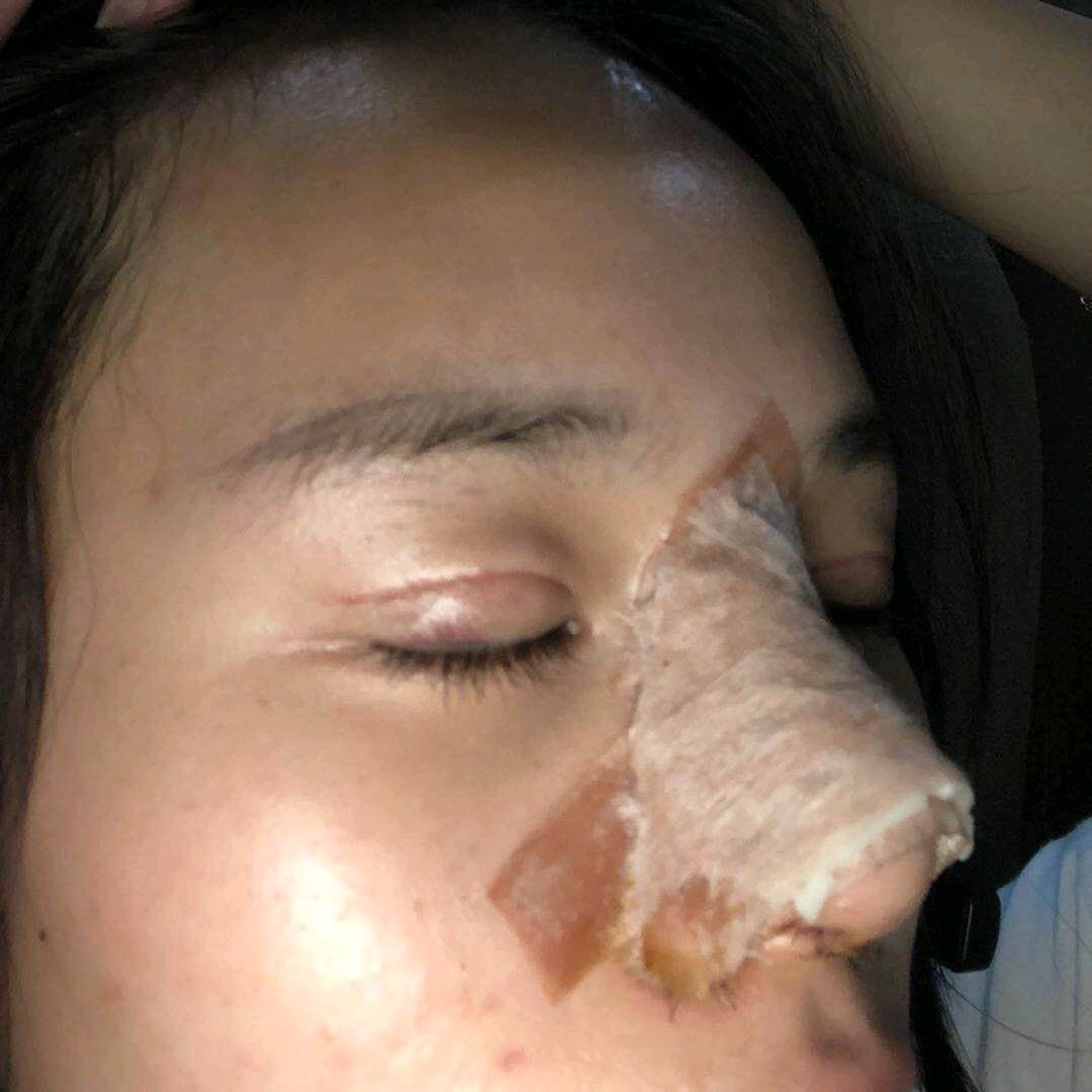 我鼻子基础很差的,基本没鼻梁,鼻头圆钝,鼻小柱短,不挺翘矮趴趴,好的选择就是肋软骨隆鼻,是半肋不是全肋哦,这里劝大家尽量不做全肋,后期鼻背的肋骨会吸收变形哦。做完第一天鼻子肿捎带着脸也会浮肿,都很正常。