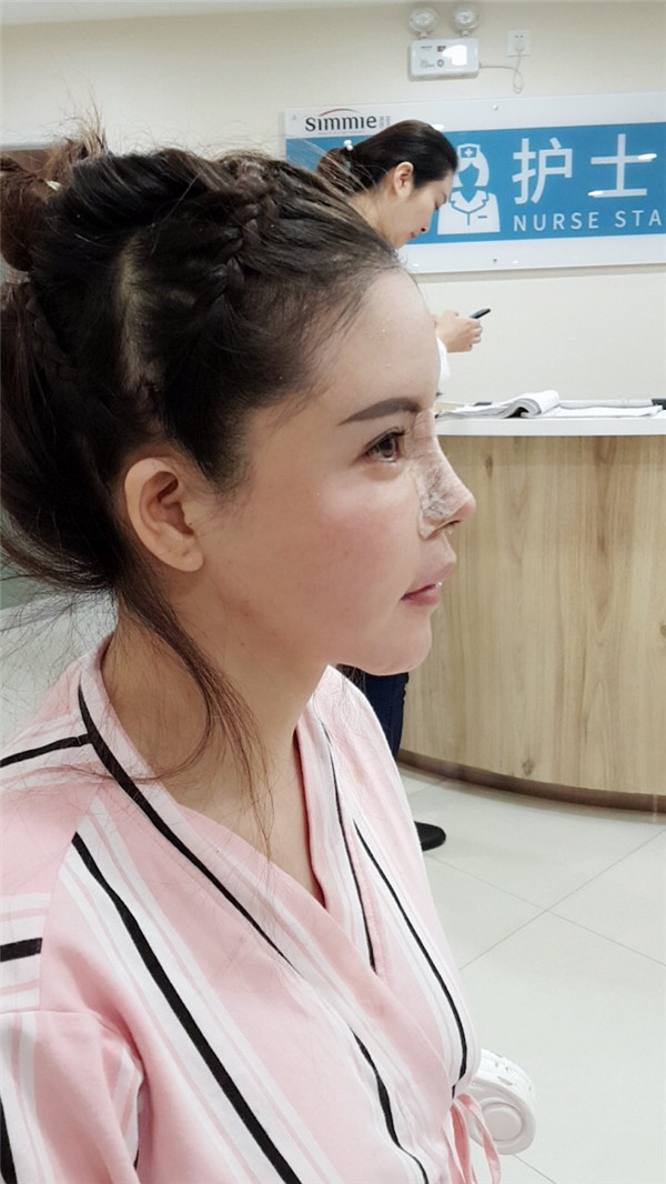 Hello,宝宝们好,在这里我想分享一下我的隆鼻经历。这次在喜美修复其实算是我第三次做鼻子了,前两次真的有苦说不出,以前特别哈韩,觉得韩国的整形技术很好,所以不远跑那边去接连做了鼻中隔隆鼻,耳软骨修复,没想到接连失了两次,搞得我现在我的鼻子发生了严重的挛缩,耳软骨支撑力根本不够,鼻子歪,鼻小柱也是歪的,鼻孔不对称,外露还十分严重!!!于是我想到了在国内做修复,因为很多姐妹都是在国内做的鼻子,比我的成功,于是通过他们的介绍,我找到了喜美的王会勇院长,现在刚做完手术还缠着绷带,大家将就着看吧~