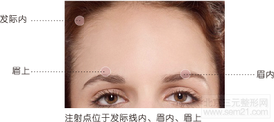 玻尿酸额部填充是利用多层次和多点的注射方法,让额头、太阳穴看起来很均匀、平滑、饱满。注射部位选择在发际、眉间,将事先确定好的注射量地注射在额头皮下多层部位,或利用多点法,把玻尿酸均匀的打在额头上,使凹陷的额头变得饱满。