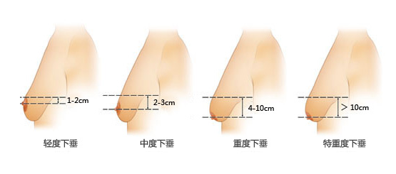 重度下垂:乳房下极超过乳房皱襞4-10cm。