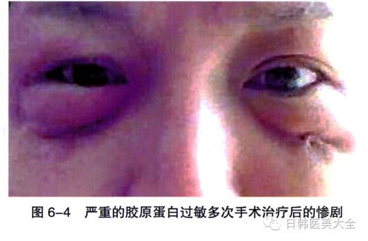 由于胶原蛋白的吸收速度较快,胶原蛋白类产品严重的并发症并不多见,常见的并发症是“超敏反应”,即俗称的“过敏”(图6-4)。