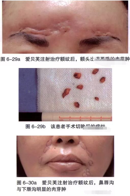 后期会出现严重的肉芽肿增生,形成硬节、鼓包或局部不平整,治疗效果差,可使用曲安奈德注射,但可能会带来局部不平整、凹陷、脱色等其他不良反应;