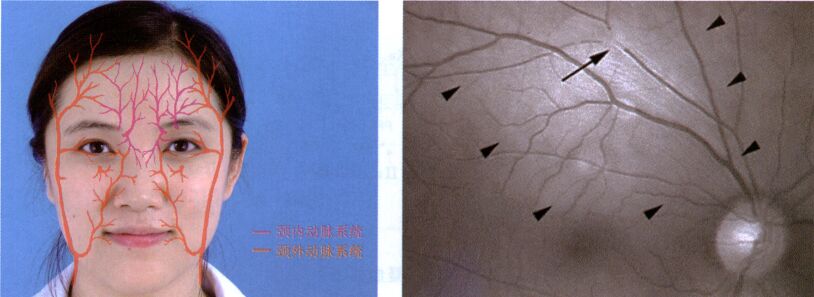 更为严重的栓塞至失明以及脑内栓塞的现象,均是沿颈内动脉系统逆流而引起的栓塞。