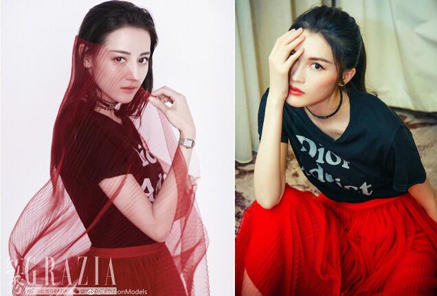 这不,前段时间,热巴身着dior的dior 2017先秋系列裙装登上杂志封面,而这款黑T+红纱裙的组合,也是大连撞。