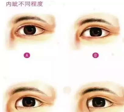 “内眦赘皮”是指在内眦角前方的一片垂直的皮肤皱襞,它遮掩着内眦角,使内眦角角度较没有内眦赘皮的人为小,它还遮挡部分视野,使有双重脸的人只能形成“半双”,而影响眼的美观。