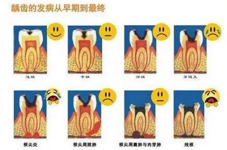 嘴巴里有一两颗虫牙,好像是很平常的事情。调查显示,中国人突出的口腔问题就表现在龋齿上。口腔里常隐藏着几百万个细菌,细菌对牙齿的侵蚀是循序渐进的,如果不及时清理口腔,牙齿的釉质会先出现黑褐色斑点,然后慢慢深入窝沟内部,形成实质性的病损。这时我们就会对冷、酸等特别敏感。后,如果龋蚀达到牙本质的深层,接近牙髓,就有可能引起感染,甚至我们牙齿本身都需要被拔除了。