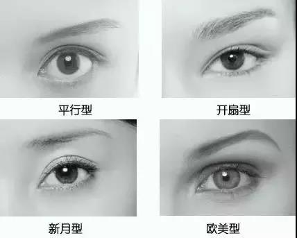 首先,说一说双眼皮的形状。全世界的双眼皮大概有六七种不同的形状,而国内常常听见的有平行、开扇、平扇等等。