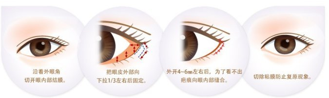 就是分别对内、外侧眼角进行矫正放大