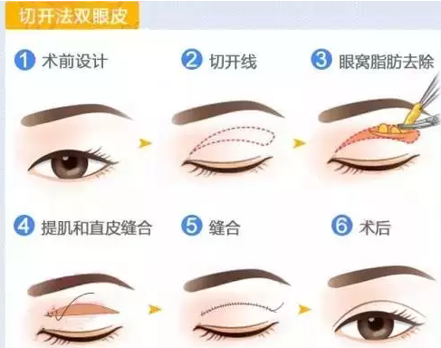 沿设计好的重睑线切开皮肤、去除多余脂肪组织、部分眼轮匝肌以及结缔组织,从而让眼睛变大变双。很多明星都会做全切,虽然这种手术方式恢复时间长,但是效果也是的