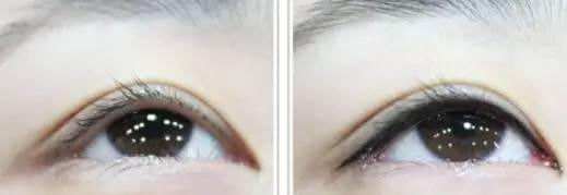 比如说眼睛小的妹子,上下眼线应稍粗些,起始部应超过泪点,尾部略超过外眦角并向上平出,这样眼睛可显大些。