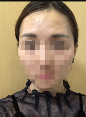 术前照片,妹子的额头比较凹陷不平,十分影响颜值,改善方案是通过自体脂肪填充。