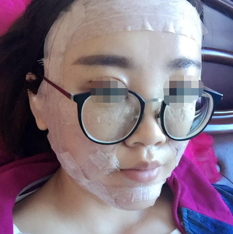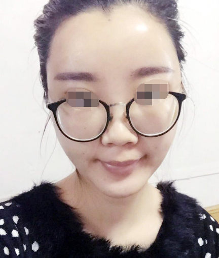 术前妹子照片,面部不平整,基础还是比较不错,选择自体脂肪填充改善