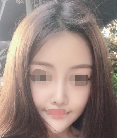 妹子术前照片,妹子额头比较平,脸看着比较大,不上镜,所以选择通过自体脂肪填充改善