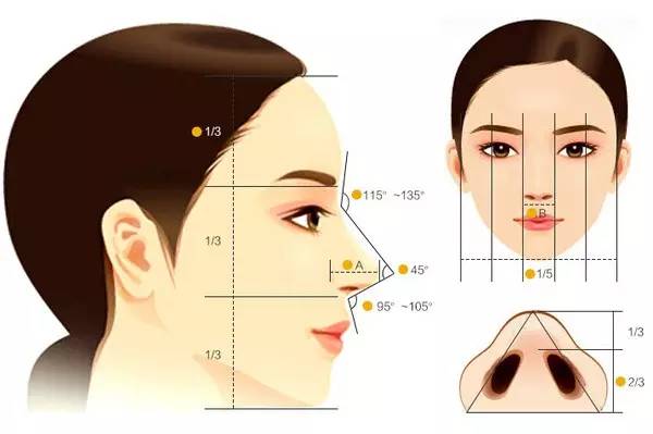 隆鼻术前设计讲究对称性、平衡性、比例协调、黄金三角及黄金分割律、线条或曲线、和谐协调、自然美原则。