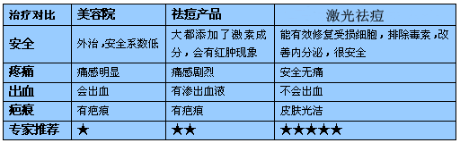 激光祛痘与传统祛痘有十分的区别,传统型的祛青春痘方法是在局部涂抹药膏或口服抗生素治疗,但是治疗的时间得长,禁忌也多,容易产生副作用;而激光美容技术应用了国际领先的激光祛痘治疗原理,突破了皮肤治疗领域的难题。