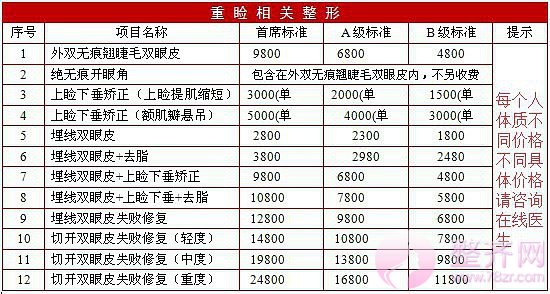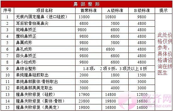 这篇“整形医院价格表”仅是小编给大家提供的参考价格,每个地区的价格都是有所差距的,一线和二线城市,专家的选择都是影响价格的因素,更多具体价格信息、医院医生预约、案例查看可以直接点击【整齐网-成就您美丽的心灵之窗】客服在线咨询了解。