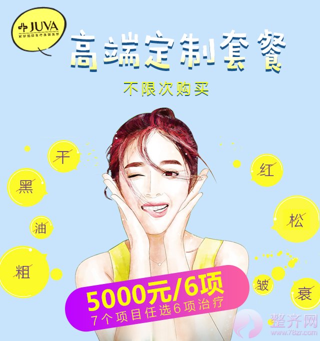 皮肤问题往往是综合问题,且因人而异,不是单一技术做一次就能解决的,需要采用多种技术联合治疗。高级定制套餐含7项精选医美项目,全疗程6次治疗,可灵活选择,终目的是为了更好的解决顾客的皮肤问题,改变了传统“一刀切”的弊端。以少的治疗次数,达到佳的治疗效果!
