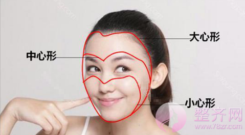 而真正的心形脸美女,面部有3个心形(见下图)。条件不好的人需要做“大心”或者“中心”,综合调整,才能达到很好的效果: