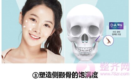 无下垂颧骨缩小术是将凹凸不平的颧骨缩小的同时打造饱满的侧颧骨模样。颧骨截骨时会一并切掉部分肌肉,而这部分肌肉会使人在笑起来的时候为正面颧骨增添饱满度,所以为了这个动作的饱满效果45度颧骨的截骨量不能过多。
