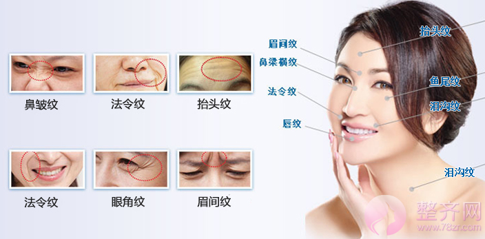 如鱼尾纹、眉间皱纹、唇纹、抬头纹等,且会随着年龄增长而逐渐加深。