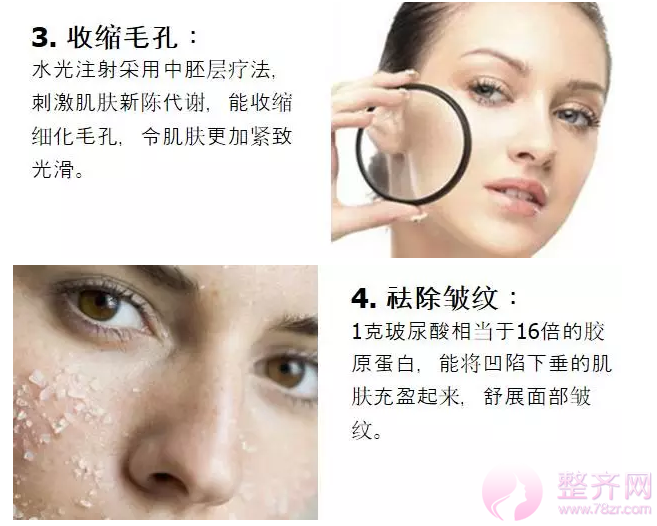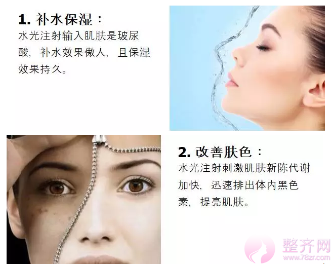 肌肤衰老多表现在松弛下垂、皱纹、粗糙、毛孔粗大、肤色暗沉等方面,水光都能起到特别好的改善。如果按疗程能达到一个更完美的效果。