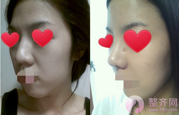 首先,鼻子变得有弧度侧面看上去线条很柔和